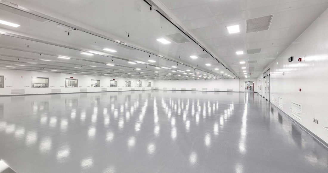 The facility incorporates 2,500m² of ISO7 cleanroom production suites, laboratory spaces, extensive administration areas, staff restaurant and welfare facilities, along with the bespoke high-end fitout of an 11m high atrium in the main reception with full height oak veneered joinery panels. There are 242 different kinds of doors in the ISO7 cleanroom including rapid rise and swing gates as well as hermetically sealed sliding doors.