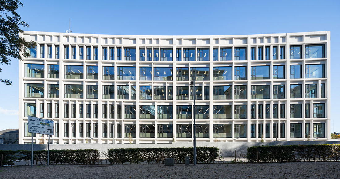 Dubbed Walter Scott House, the project comprised of a 19,335m² six and four-storey office building with a green roof and central atrium, and consisting of 10,060m² of office space over a 9,275m² double basement car parking with ancillary accommodation, all on a site of 0.86ha. The site is bounded by Military Road to the west, St. Johns Road to the north, from which the car park is accessed, a HSE carpark and The Camac River to the East, and IMMA entrance to the South. The area of development is within the curtilage of two protected structures: The Phoenix Deer Park Wall and the East Gate Lodge. To facilitate the development, the removal of some of the existing stone walls and the existing 105m² modern blockwork shed was required. A section of the boundary wall along Military Road was removed to allow for secure vehicular access into the site. The scope of works also included the provision of hard and soft landscaping, a new stone boundary wall to Military Road, an ESB substation, a seven metre Garda telecommunication mast on the sixth-storey core roof, a 415m² single storey services building with a green roof, new foul drainage, attenuated surface water drainage, and all ancillary site structures and works.