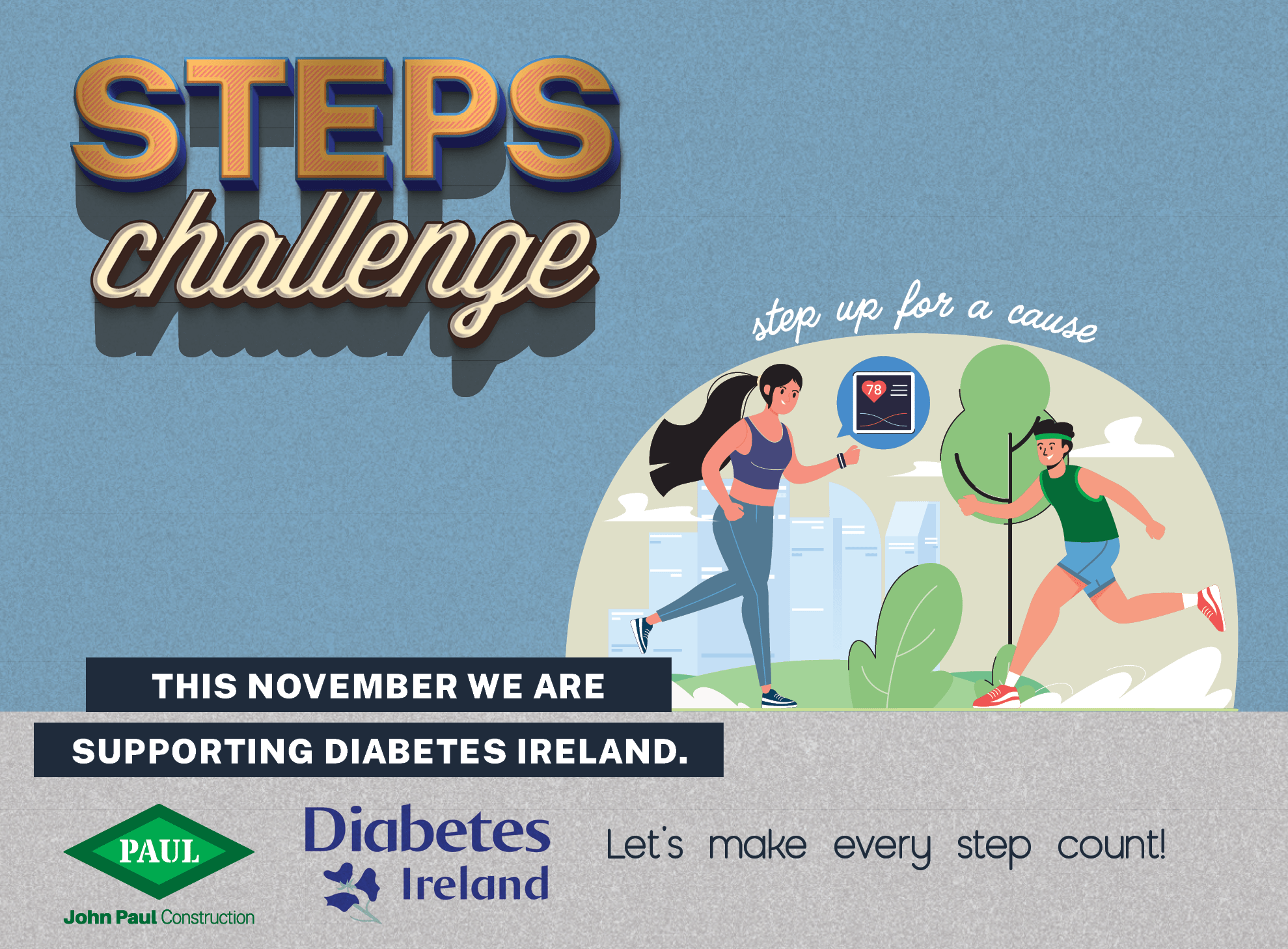 Today is World Diabetes Day, and we are delighted to be supporting Diabetes Ireland through our Step Challenge over the course of November. Just under 200 people from across the company are taking part in the challenge, with great competition developing between the teams. Today, to mark World Diabetes Day, walks took place on sites and at our offices.
